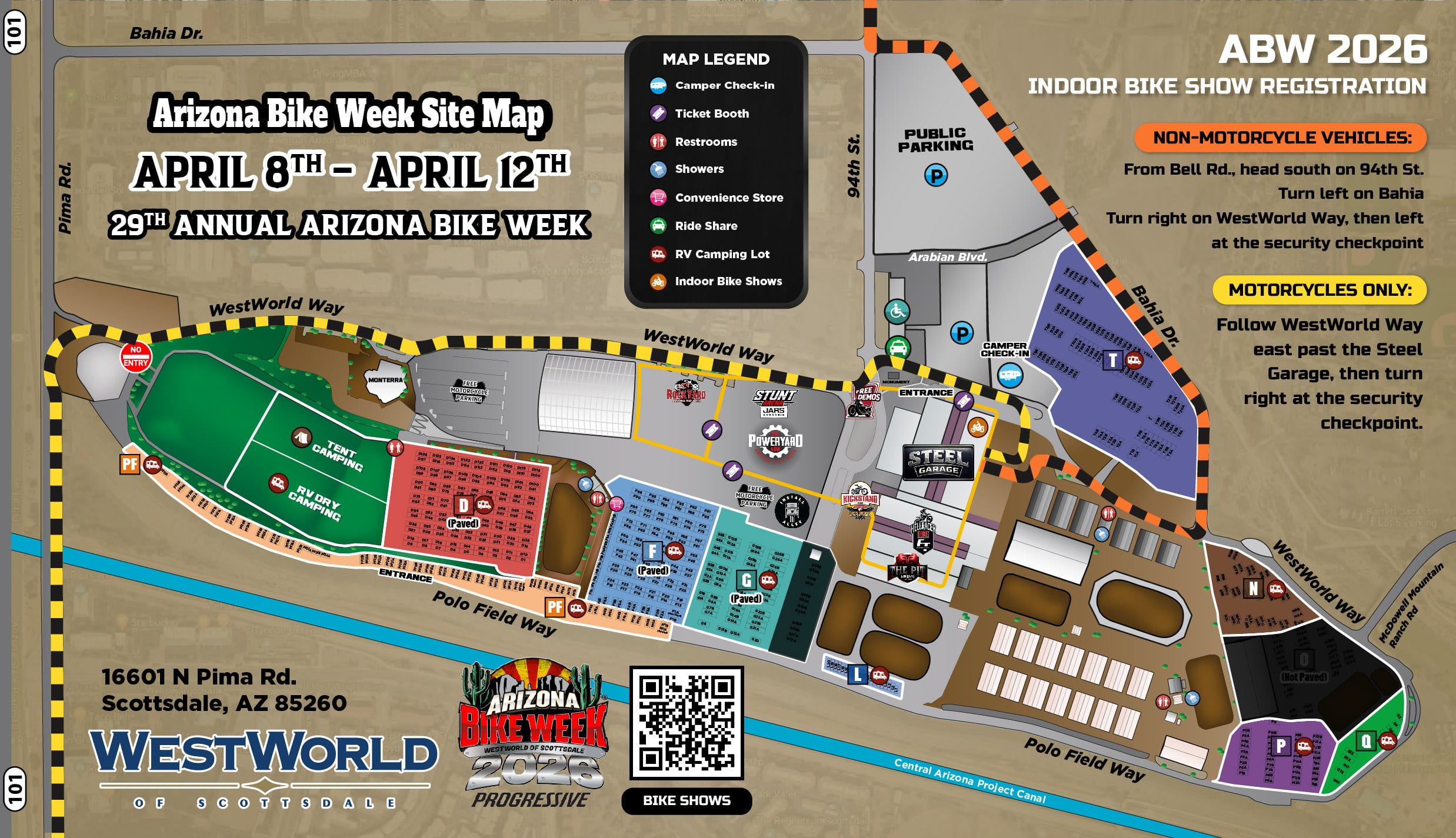 - Park your bike at the Indoor Bike Show Area and get ready for photos, voting, and bragging rights